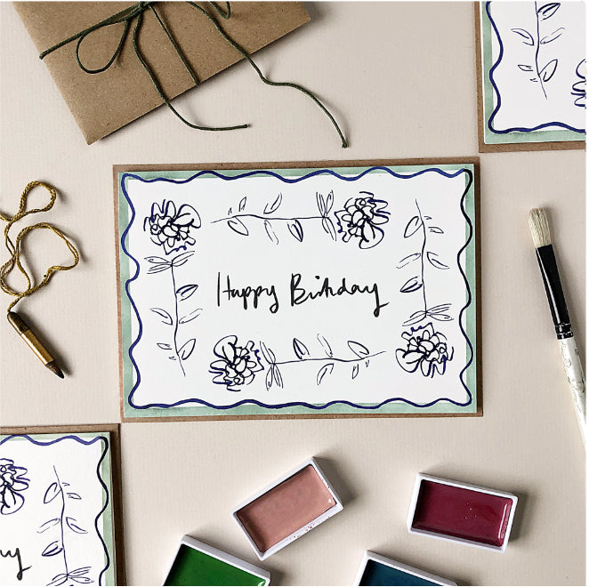 Ranunculus Squiggle Line Stem - Happy Birthday Card